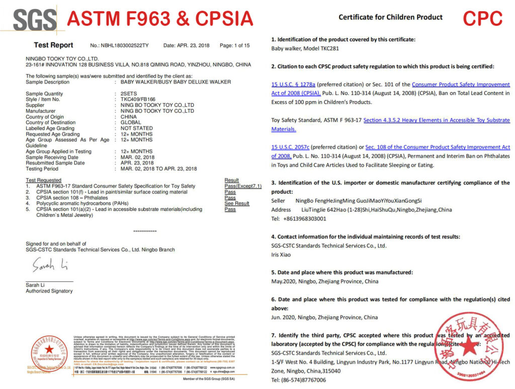 - CPC statement; This is also a required documentary proof, just remember ask your supplier to offer it together with ASTM F963.